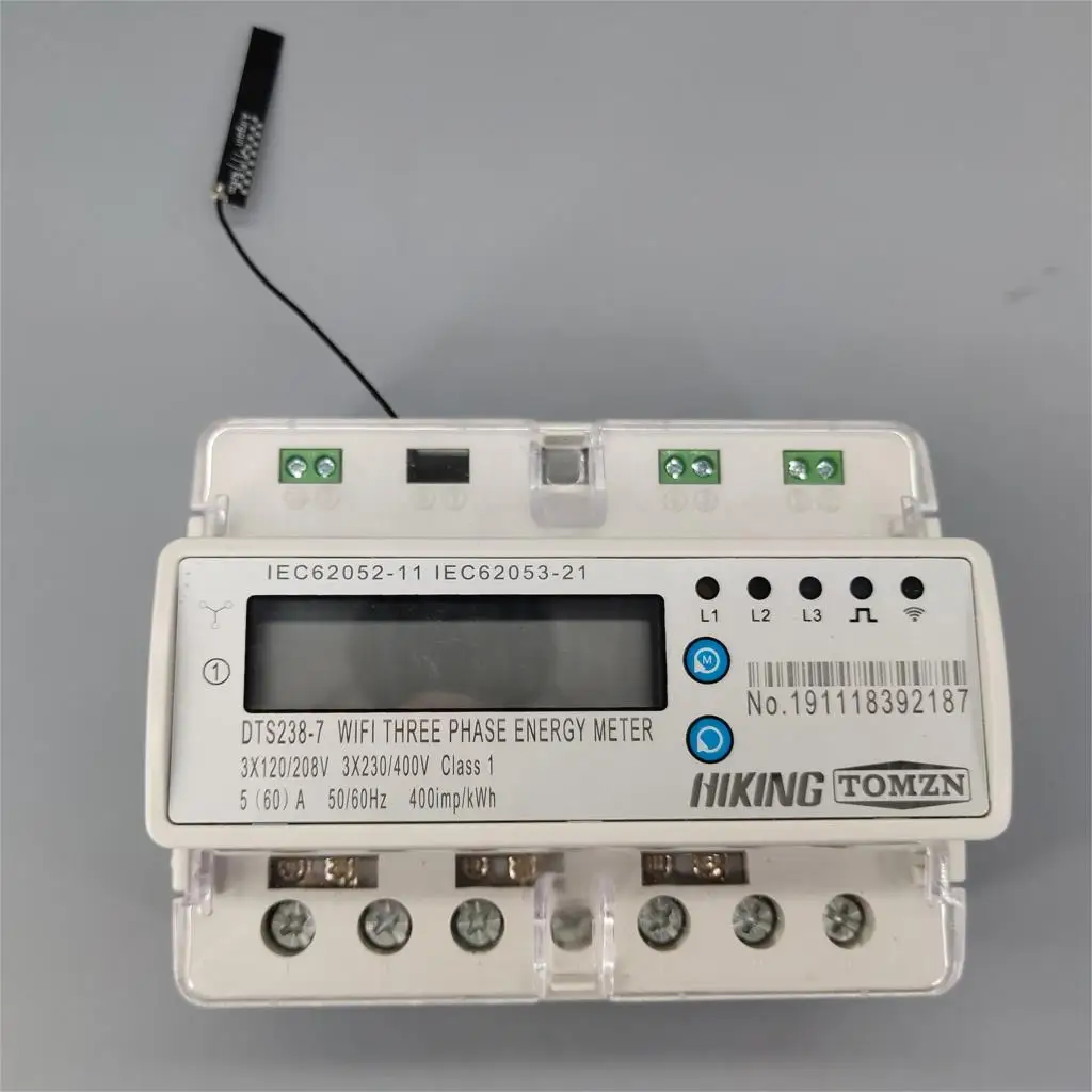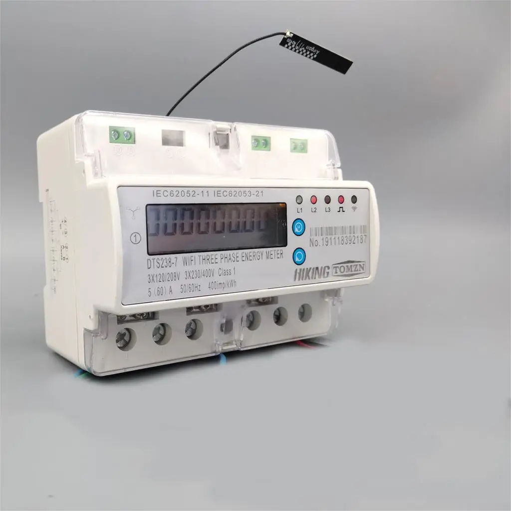3 Phase 60A remote control wifi smart Din rail energy meter kwh with over under voltage current pro