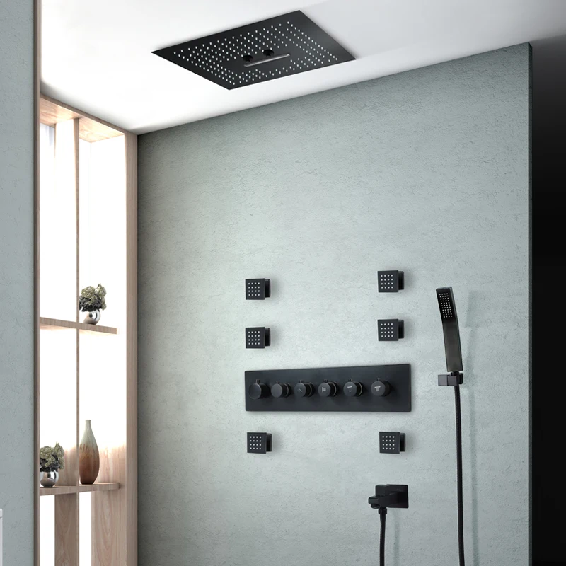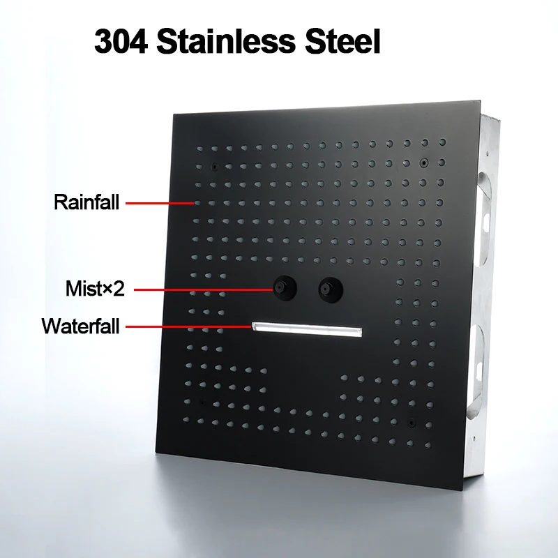 ORIGINAL 400mm Shower Set Rainfall Showerhead 304 SUS Remote Control Led Ceiling Black Shower Faucets Thermo